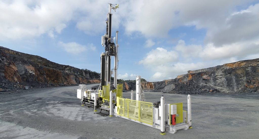 La perforadora fue desarrollada por Boart Longyear y toma como base una plataforma previamente utilizada en operaciones de exploración, incorporando mayor potencia, capacidad de perforación y automatización en el manejo de tuberías.